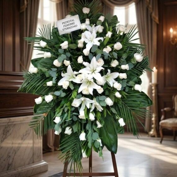 A través de este imponente Pedestal Fúnebre Eternidad podrá expresar sus mas sentidas condolencias, sobre un trípode de bambú se disponen